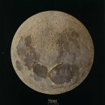 “The painting was created in 1888 by Julius Grimm (1842-1906), a German scientific photographer whose techniques of mapping the surface of the moon became famous when his acclaimed Atlas der Astrophysik was published in 1881. After meeting the Grand Duke Friedrich I von Baden, an astronomy enthusiast, in 1887, Grimm decided to paint a representation of the moon, based on his photographs, to be presented to the Grand Duke. The painting shows the moon as it can never be seen in reality: fully lit across the entire surface at once. The painting’s highly textured surface faithfully represents the actual landscape of the moon, which Grimm determined with precision by examining the shadows cast during the various lunar phases. When lighted from the direction Grimm indicated with a painted arrow, the ridges of paint cast shadows that create the photorealistic effect of the painting.” EON