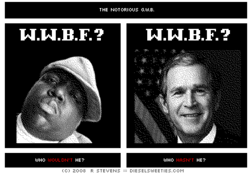 View Larger Image The Notorious G.W.B. WyshBlog2018-04-10T17:30:46+00:00May 16th, 2008|Tags: Biggie, Diesel Sweeties, George W Bush, Notorious BIG, Notorious GWB, WWBF| Related Posts